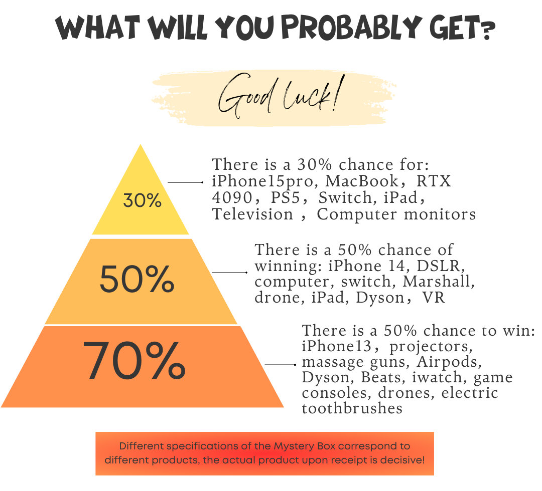 Note:The mystery box contains large electronic products, household appliances, large toys, outdoor equipment and various smart electronic devices